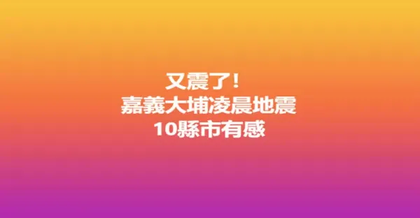 又震了!嘉義大埔凌晨「規模4.4地震」10縣市有震感!