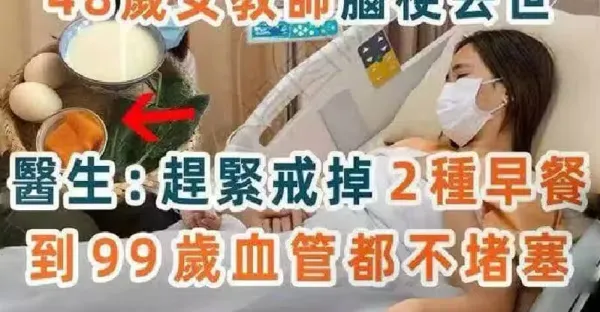 48歲女教師腦梗離世,醫生:天天吃2種早餐,血管很容易堵塞!!!!!