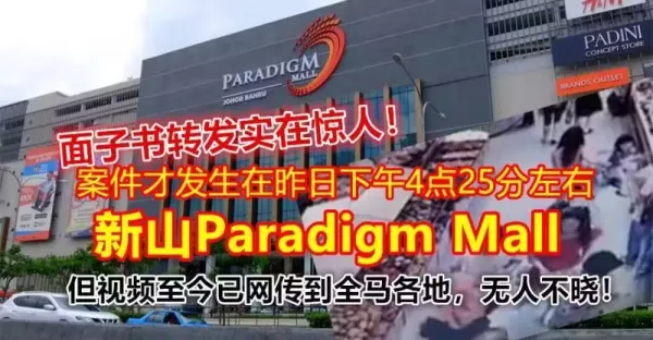 案件才發生在昨日下午4點25分左右,新山Paradigm Mall... 但視頻至今已網傳到全馬各地!