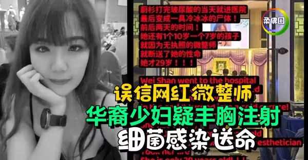 誤信網紅微整師 華裔少婦疑豐胸注射 細菌感染送命