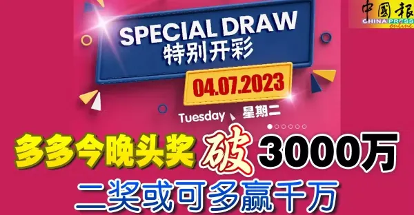 多多今晚頭獎破3000萬 二獎或可多贏千萬