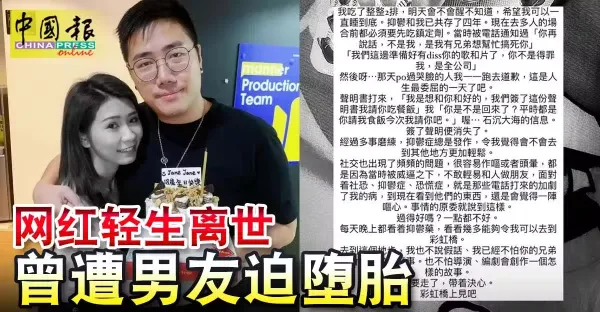 網紅輕生離世 曾遭男友迫墮胎