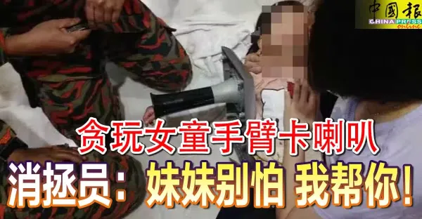 貪玩女童手臂卡喇叭 消拯員:妹妹別怕 我幫你!