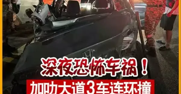 深夜恐怖車禍! 加叻大道3車連環撞 5華青 1死4傷