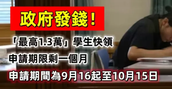快訊/政府發錢!「最高1.3萬」學生快領 申請期限剩一個月
