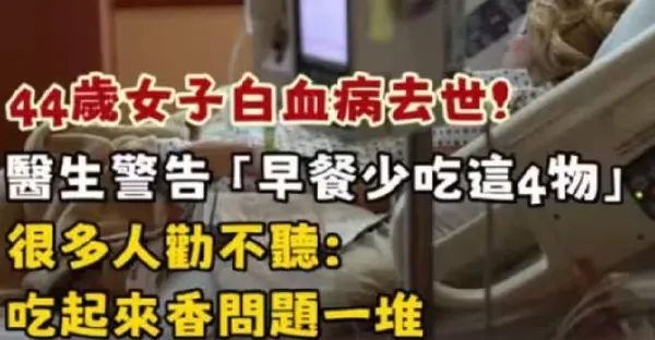 44歲女子白血病去世!醫生警告「早餐少吃這4種食物...」很多人勸不聽:吃起來香問題一堆