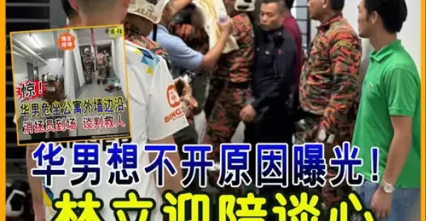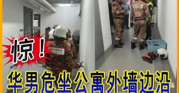 驚!華男危坐公寓外牆邊沿 消拯員到場 談判救人