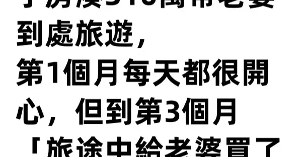我63歲,大病一場後決定及時行樂!賣了房湊310萬帶老婆到處旅遊,第1個月每天都很開心,但到第3個月「旅途中給老婆買了個金鐲子」, 才發現事情大條...