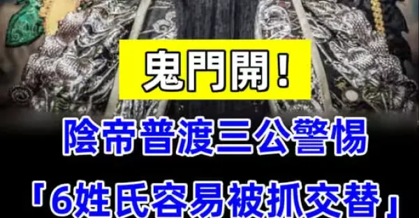 鬼門開!陰帝普渡三公警惕「6姓氏容易被抓交替」「13禁忌不能觸犯」注意事項曝光!