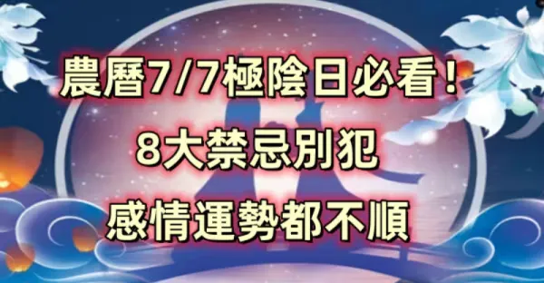 農曆7/7極陰日必看!8大禁忌別犯,感情運勢都不順