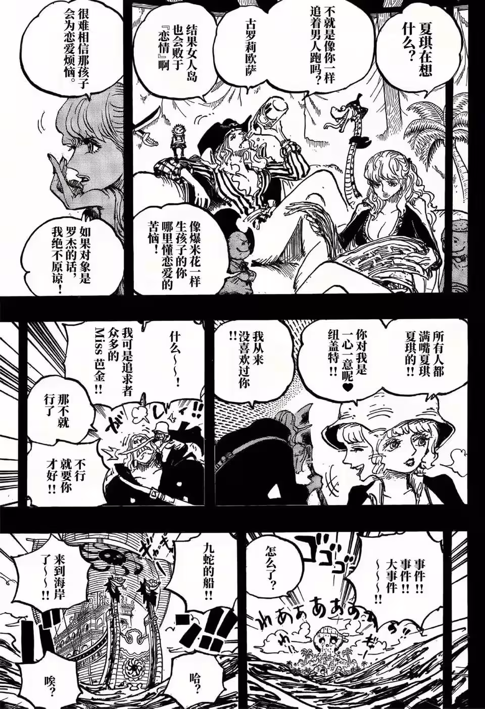 大媽已經生下幾個孩子了,她被古羅莉歐薩嘲笑生孩子太多了,斯圖西也很苦惱,他們一直在討論夏琪,不過斯圖西是對白鬍子一心一意的。白鬍子不喜歡斯圖西,九蛇海賊團出現在蜂巢島,夏琪要在這裡生活一段時間,海賊都傻眼了。
