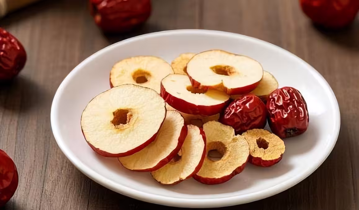 先說蘋果搭配紅棗,紅棗也是藥食同源的。蘋果能益胃生津,紅棗可以溫中健脾補氣血 。要是你平常總 覺得自己很虛,氣血不足,稍微動一動就累,或者頭暈眼花、失眠多夢,臉色又黃又白還晦暗 ,就可以試試這個搭配。