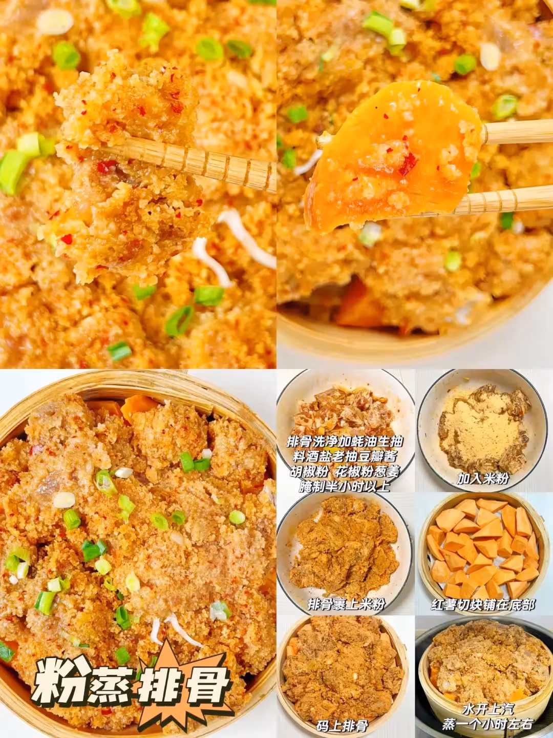 ★3、粉蒸排骨:排骨裹米粉蒸製,肉質鮮嫩,米粉香滑。