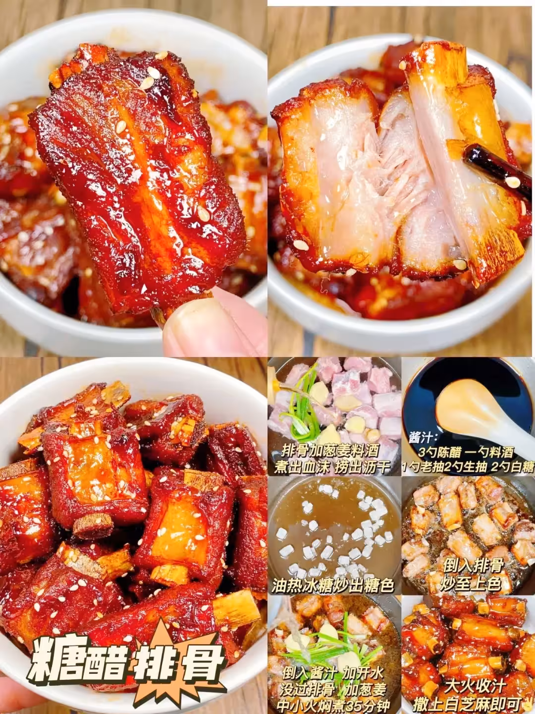 ★4、糖醋排脅:酸甜糖醋汁裹排骨,開胃下飯,色澤誘人。