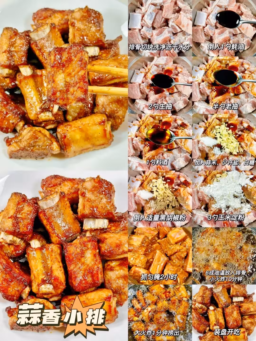 ★6、蒜香排骨:蒜香濃郁,炸制或烤制,香脆可口。