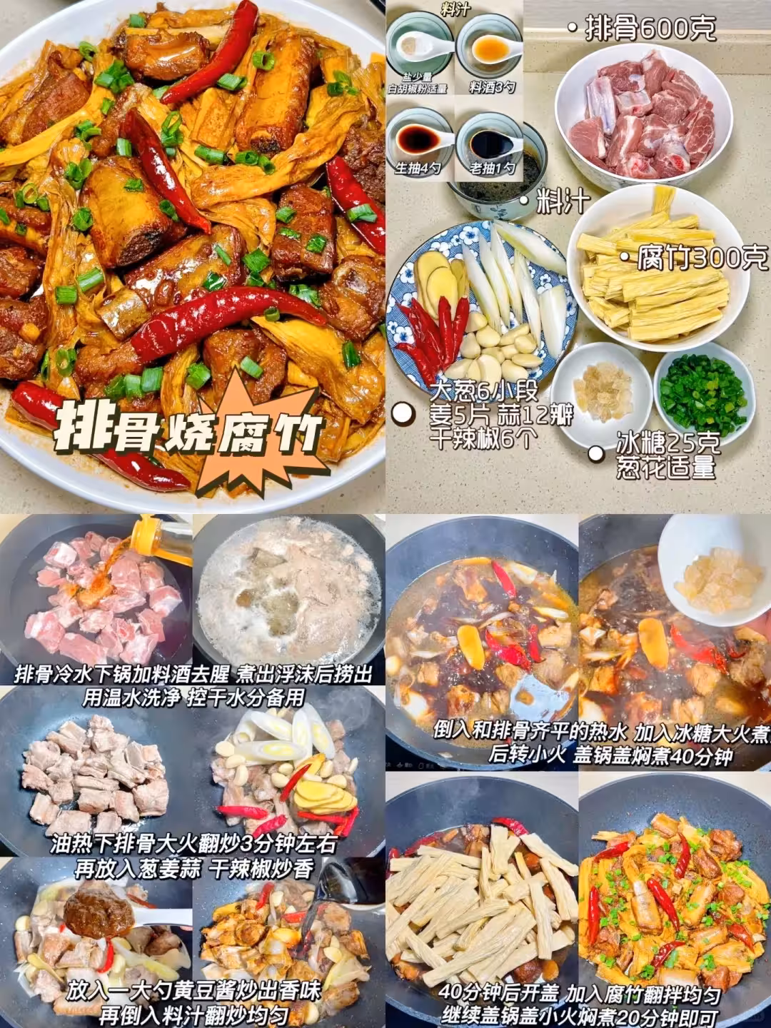 ★9、排骨燒腐竹:排骨與腐竹燒制,腐竹吸汁,排骨鮮美。