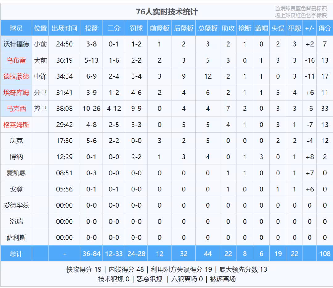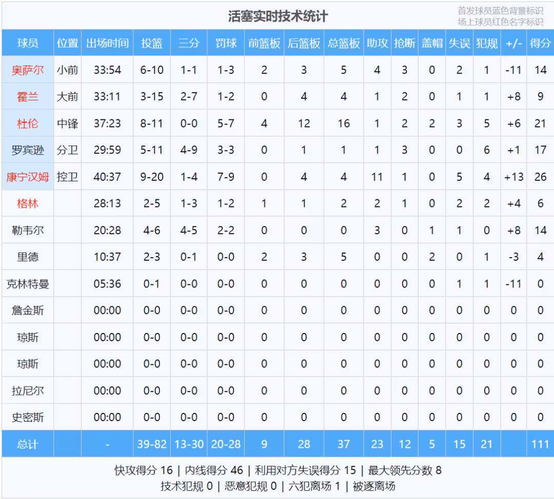 時間11月10日,NBA常規賽:活塞客場111-108險勝76人。末節還剩16.9秒,坎寧安後仰中距離跳投打進。隨著馬克西最後時刻絕平三分不中,坎寧安完成了准絕殺,活塞取得6連勝。此役過後,活塞8勝2負穩居東部第一。