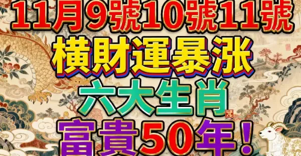 11月9號10號11號橫財運暴漲 ,六大生肖享富貴50年!