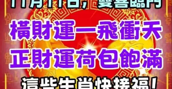 11月11日,雙喜臨門,橫財運一飛沖天,正財運荷包飽滿,這些生肖快接福!