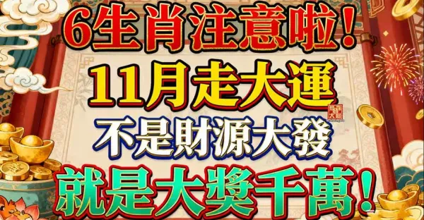 六生肖運勢飄紅 : 11月6號 偏財旺, 7號 發橫財, 8號 中頭獎