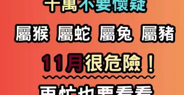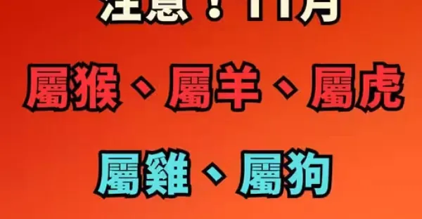 注意!11月(屬猴、屬羊、屬虎、屬雞、屬狗)一定要看!