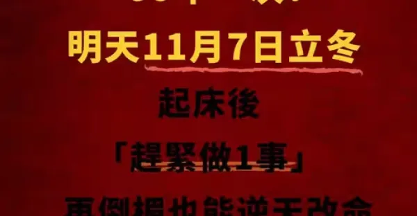 60年一次,就在明天!11月7日「立冬」,起床後「趕緊做1事」再倒楣也能逆天改命,乞丐也能變富翁!